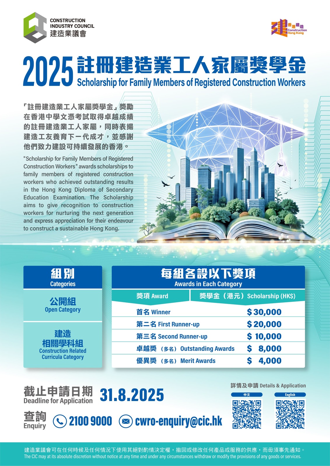 • 申請人須於2025年8月31日或之前通過電子申請表格遞交在線申請。